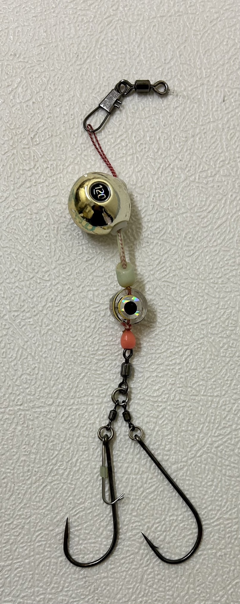 (画像の仕掛けについているのは弊社のオリジナル商品「餌固定器具」と「光る眼玉」)