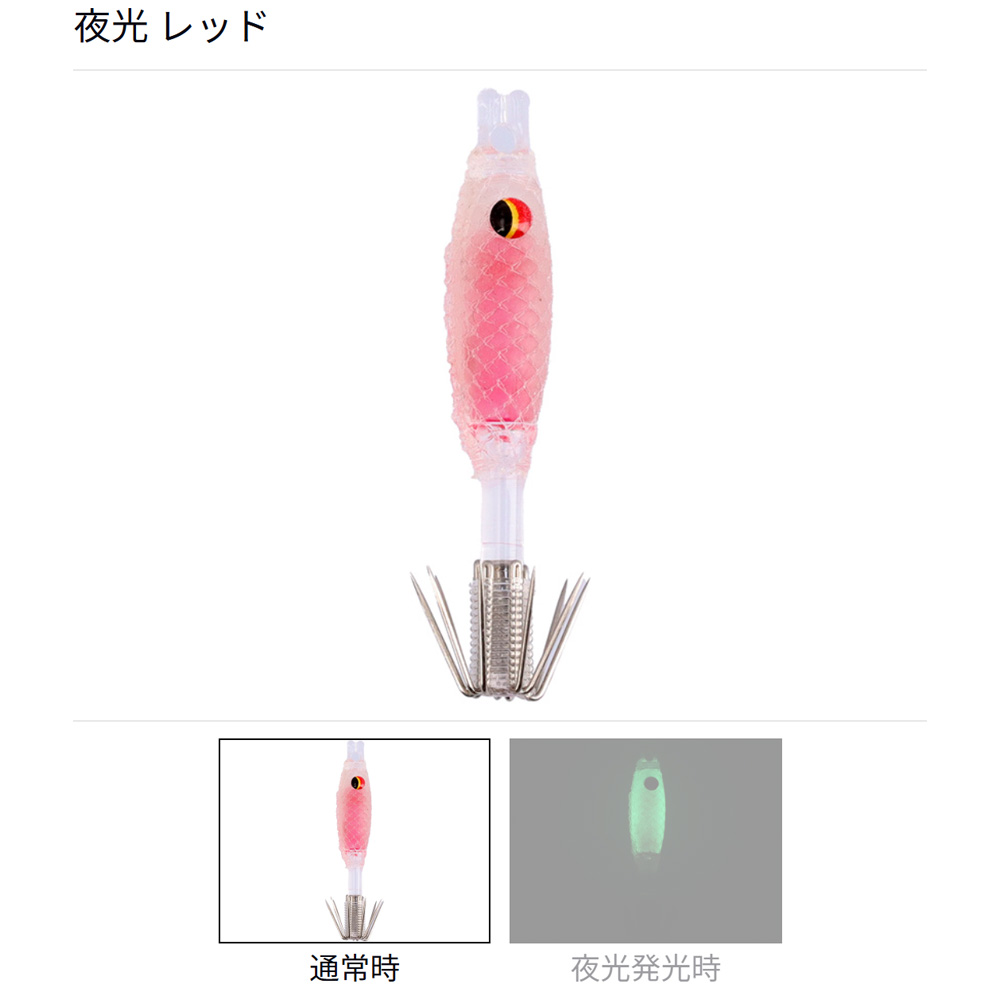細身ボディで針掛かりをスムーズにしつつ、イカが触れる外側をソフトに仕上げることで、見切って離しづらい設計になっています。